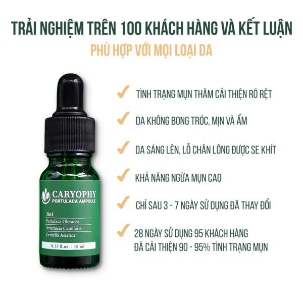 Công dụng của Serum Caryophy Portulaca Ampoule trị mụn, trị thâm: