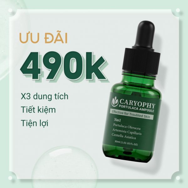 ✔️ Serum Caryophy Portulca Ampoule là Serum trị mụn thâm Hàn Quốc với dung tích 10ml có khả năng trị mụn, trị thâm, dưỡng ẩm, kháng khuẩn kháng viêm, phục hồi da và chống lão hóa toàn diện.